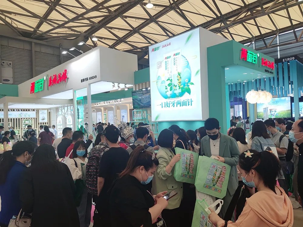 展區(qū)內(nèi)豐富、多樣化的兩面針產(chǎn)品吸引了不少來(lái)自全國(guó)各地的渠道代理商、電商來(lái)到展位前進(jìn)行了解、商洽。他們對(duì)兩面針中藥的效用高度信賴,也非??春弥兴幦栈a(chǎn)業(yè)的未來(lái)發(fā)展前景。不少熟悉兩面針的觀眾,還有一些被兩面針健康、時(shí)尚形象吸引的年輕觀眾紛紛來(lái)到展臺(tái)前咨詢兩面針的新產(chǎn)品?!霸瓉?lái)中藥產(chǎn)品也可以這么潮!”大家對(duì)兩面針產(chǎn)品發(fā)生的積極變化和提升表示認(rèn)可和歡迎。參展期間,兩面針公司還通過(guò)現(xiàn)場(chǎng)表演和抽獎(jiǎng)、網(wǎng)上直播等方式提升產(chǎn)品的曝光度,現(xiàn)場(chǎng)的人氣度和關(guān)注度一路飆升,展區(qū)前人頭攢動(dòng)。